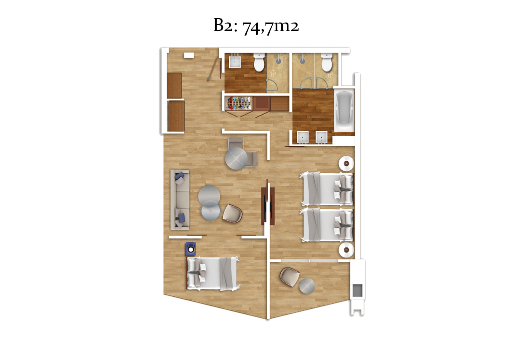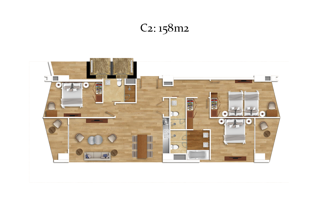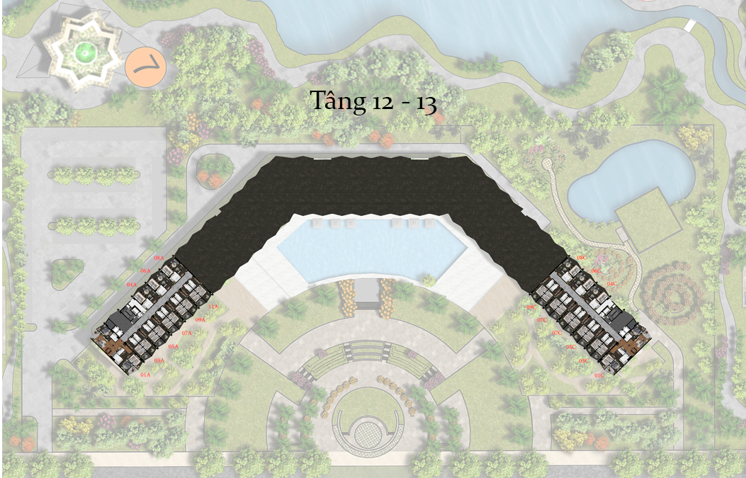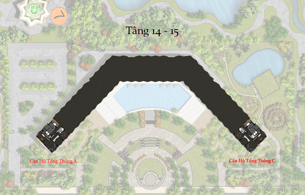 Tầng 14 – tầng 15: Căn hộ tổng thống