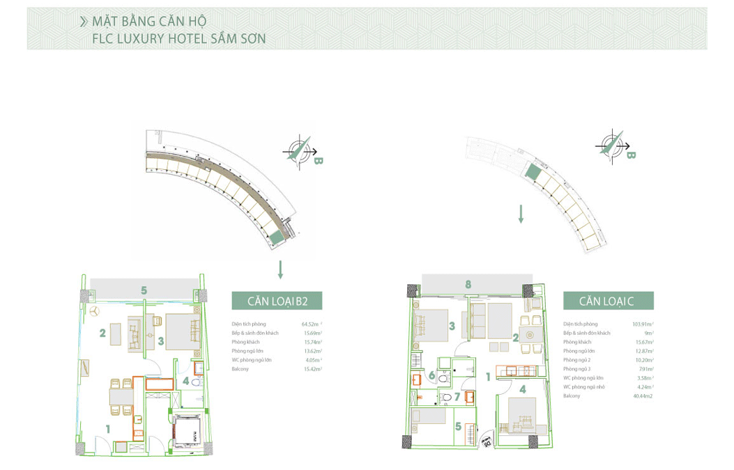 Diện tích căn hộ FLC Grand Hotel : từ 44m2 – 569m2.